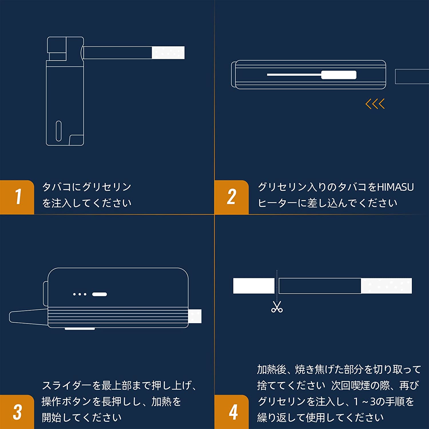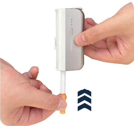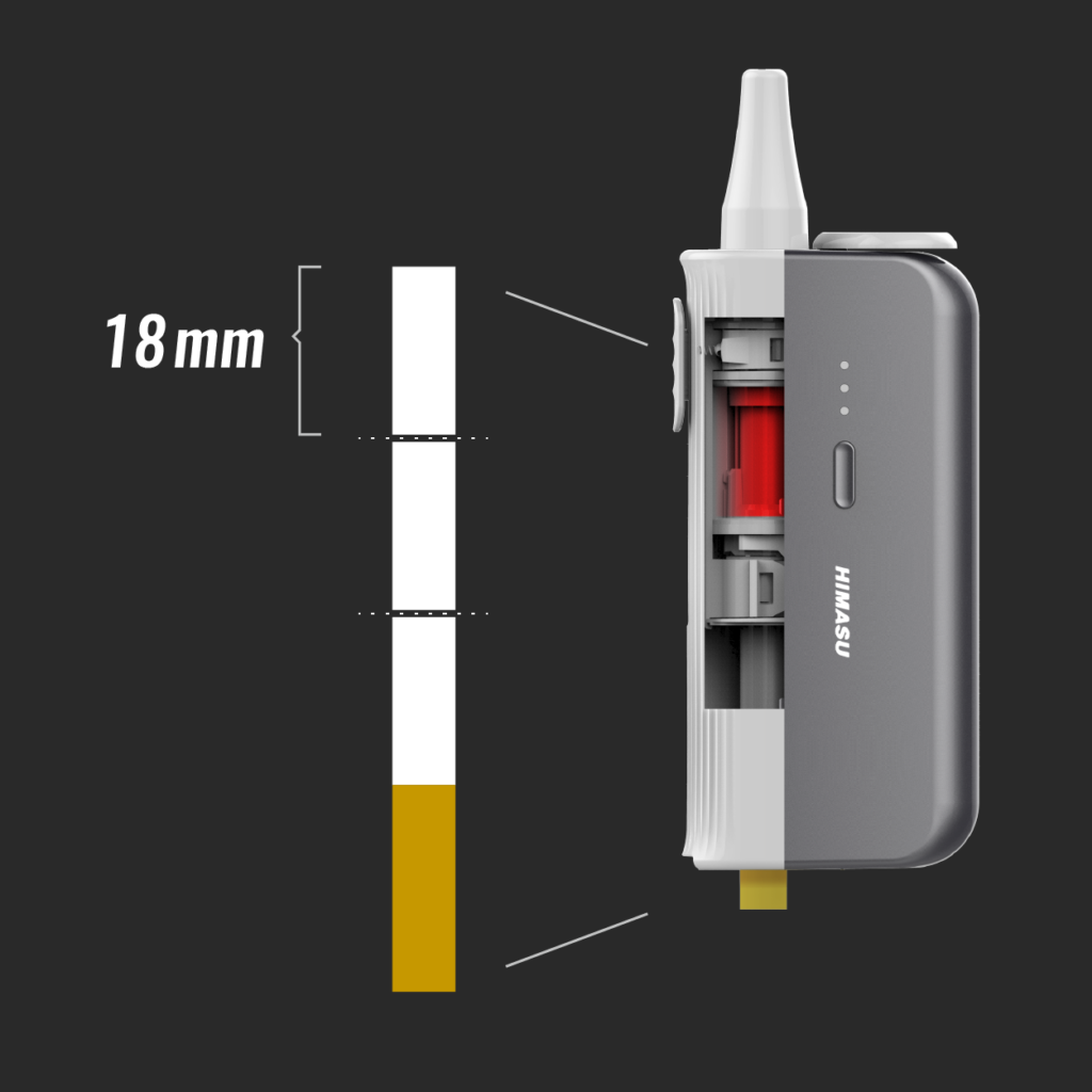 通常の加熱式タバコのように専用スティックを用意する必要はなく、通常サイズ(太さ7.8㎜)のタバコならどの銘柄でもHIMASUで加熱式タバコとしてお使いいただけます