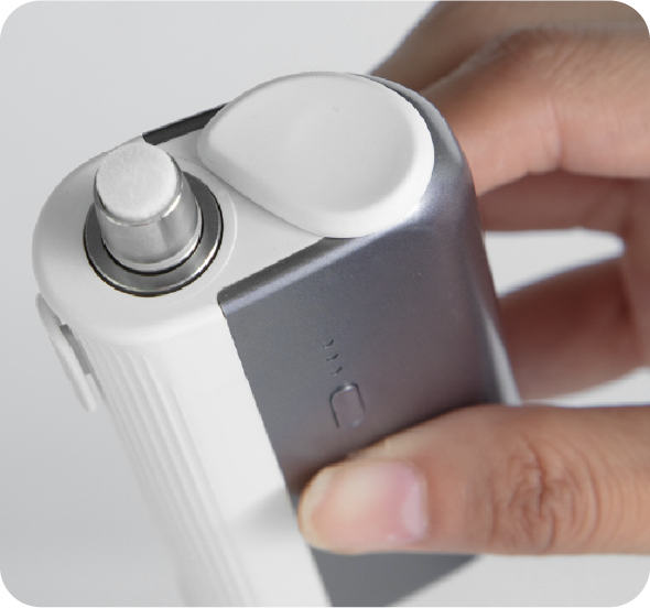 タバコをセットしサイドのボタンを最上部までスライドしたら前面のボタンを長押し加熱開始します